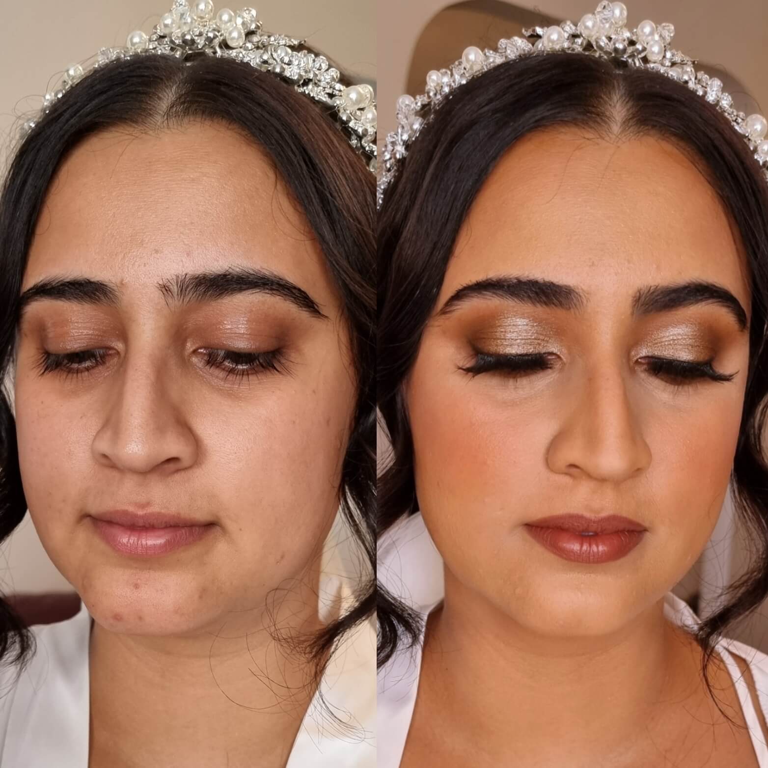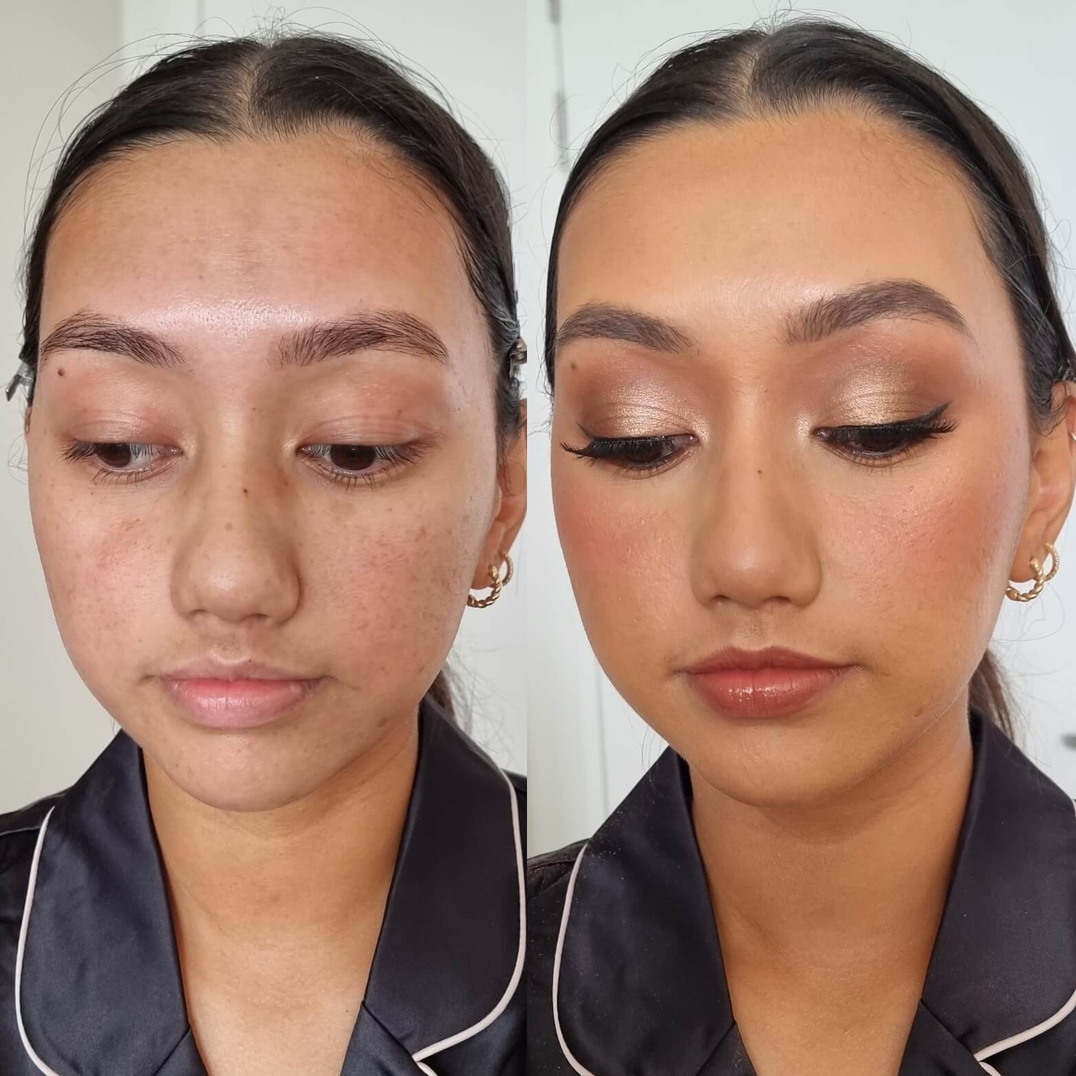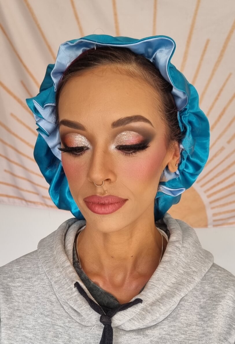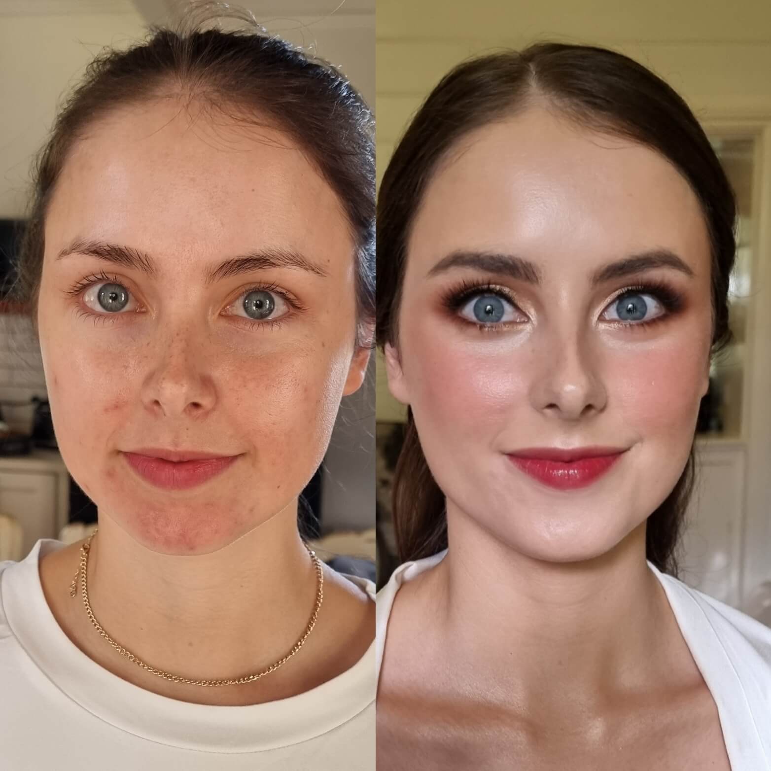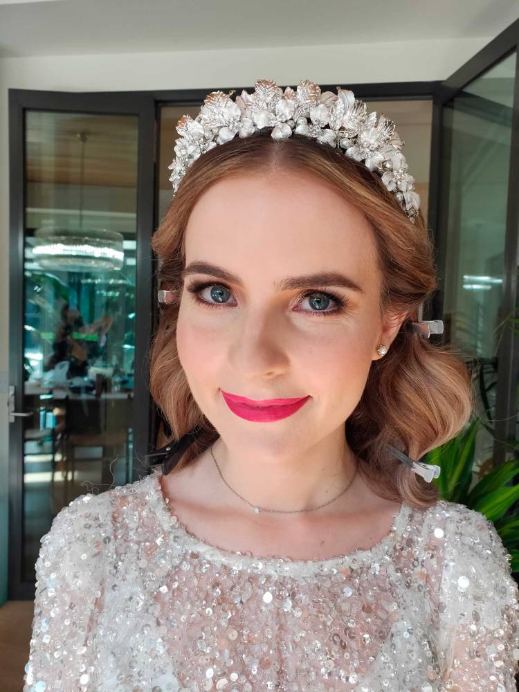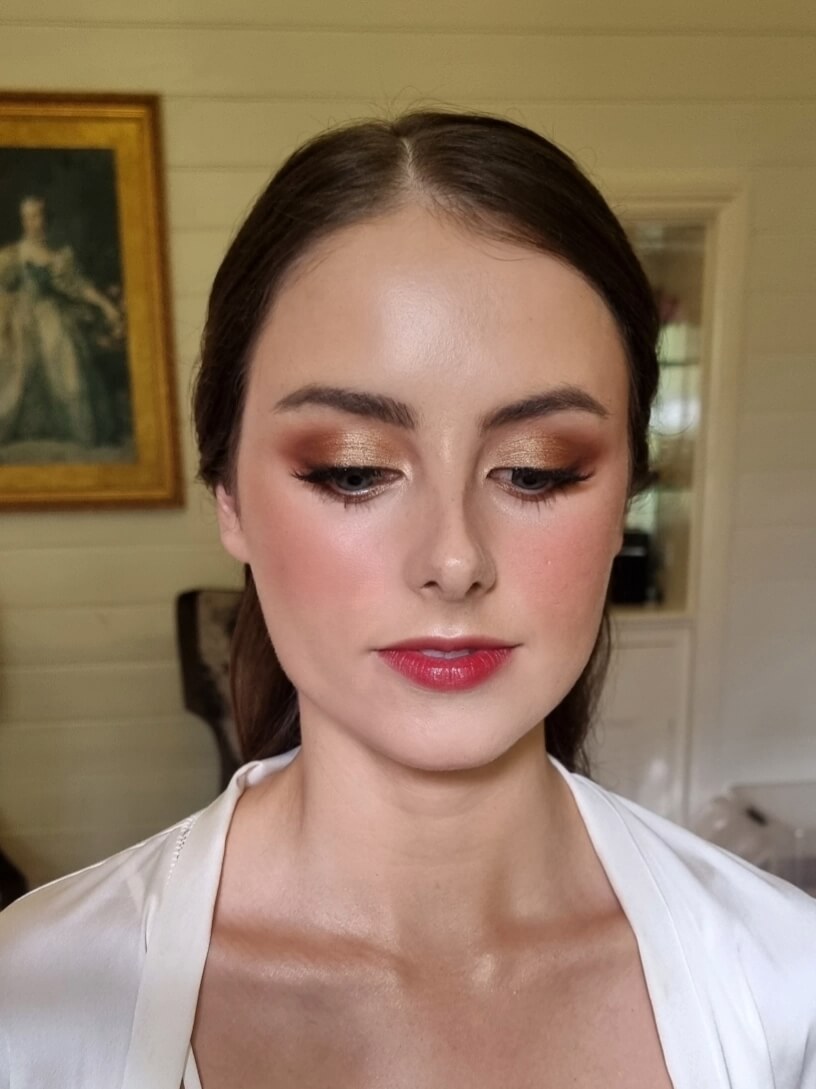 “Our makeup looked flawless all day, every single person who saw it commented on how incredible it looked… it held up without a single touch up needed! It somehow looked as good at midnight as it did at 9am and didn’t budge even through (happy) tears, sweat and 37 degree weather. You also brought a really positive and calm energy to the process which was absolutely what any wedding party needs!”